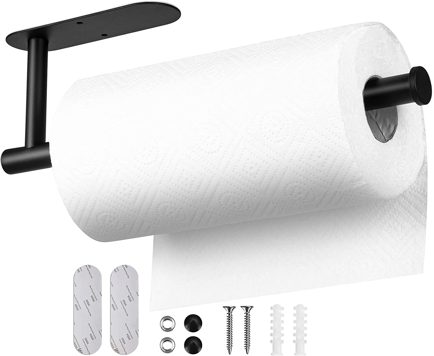 13 inch Black Paper Towel Holder Wall Mount, Inwaysin Under Cabinet Paper Towel Holder, Drilling or Self Adhesive Paper Towel Holder for Kitchen, Bathroom, Cabinets, Wall