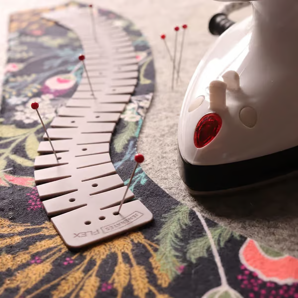 Not just for curves! You can also use the FLEX hemmer on straight edges. Just add a little tension when pinning to keep that curve at bay. 📏 And here's a pro tip: it works like a charm on a tailor’s ham, ensuring your fabric stays perfectly in place while you work your magic. 🧙♀️ The Jenerates FLEX can handle extreme curves too, as you can see in our amazing photos! 📸